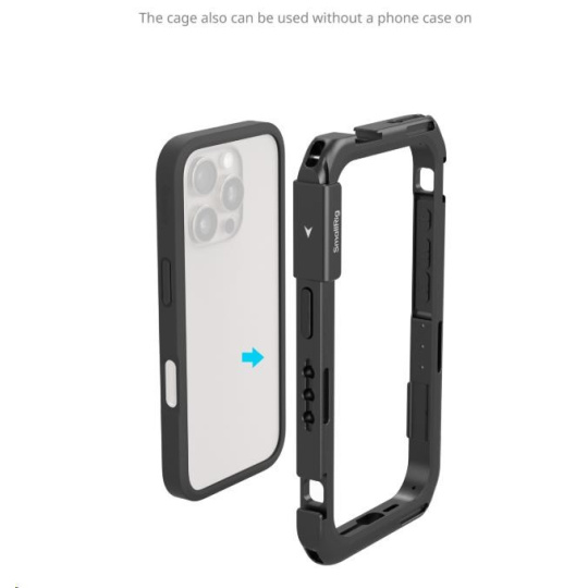 A dedicated mobile video cage for iPhone 16 Pro enables usage with protective phone cases for wide expansion options and all-around phone protection.