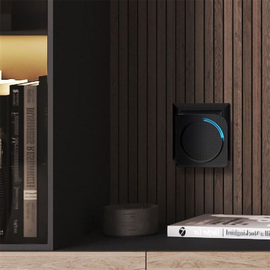 Černé provedení s čistými liniemi působí nenápadně a elegantně zároveň. Zvonek decentně ladí s většinou interiérů a neruší celkový vzhled místnosti. Kombinuje moderní design s praktickým využitím v každodenním provozu.