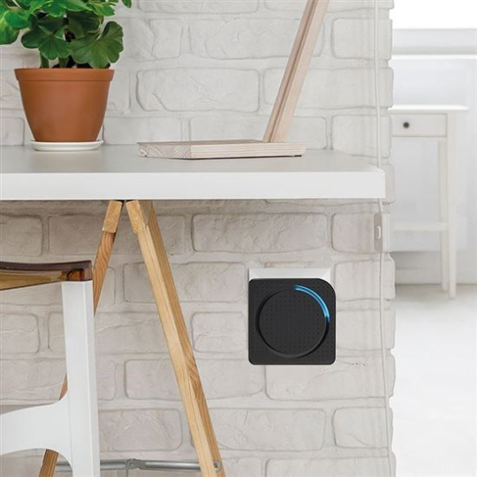 Bezdrátový zvonek stačí zapojit do běžné zásuvky, není potřeba žádné vrtání ani tahání kabelů. Dosah až 200 metrů v otevřeném prostoru zaručuje bezproblémové fungování i ve větších domech, kancelářích nebo provozovnách. Oba vysílače jsou spárovány ke zvonku a zvyšují variabilitu použití, např. ke vchodovým dveřím a na branku. Jsou na baterie a snadno se upevní na zeď nebo dveře. Stříška vysílače zvyšuje odolnost proti dešti a zároveň chrání před přímým slunečním světlem, to prodlužuje jeho životnost.