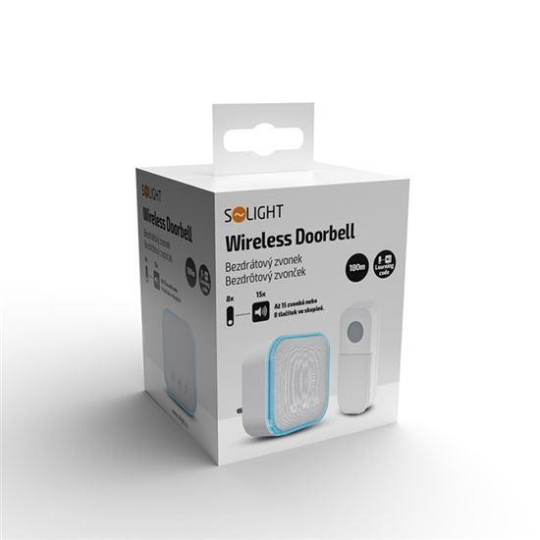 Solight bezdrátový zvonek, do zásuvky, 180m, bílý, learning code
