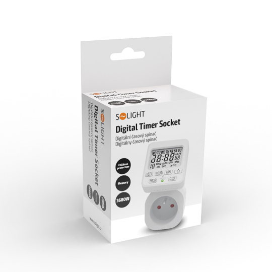 Digitální programovatelný časovač s dětskou pojistkou, který může být výborným pomocníkem pro spouštění Vašich elektrospotřebičů v tu správnou chvíli. Časovač je vybaven možností nastavení pro 18 spínacích cyklů a 15 režimů opakování dle Vámi požadovaných dnů a hodin. Další možností je režim náhodného časového spouštění nebo odpočet.