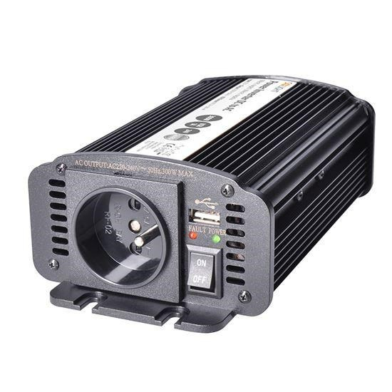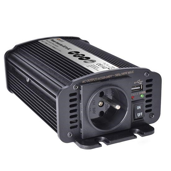 Max. zatížení výstupu (stálé): 300W, max. zatížení výstupu (ve špičce): 600W, nominální vstupní napětí (DC): 12V, nominální výstupní napětí (AC): 230V, 50Hz, výstupní zvlnění má tvar modifikané sinusoidy, napájení: DC 12V cigaretový autoadaptér (součástí balení), ochrana proti přehřátí, zkratům, přepětí, přetížení a vybití baterie, pracovní teplota: -20°C až +50°C.... více