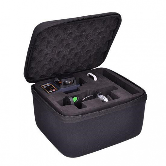 obsah balení: vodováha, návod, malý stativ, držák, terčík, dálkový ovládač, brašna, napájecí kabel.