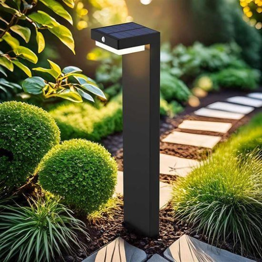 LED sloupkové osvětlení se solárním panelem a světelným a pohybovým čidlem