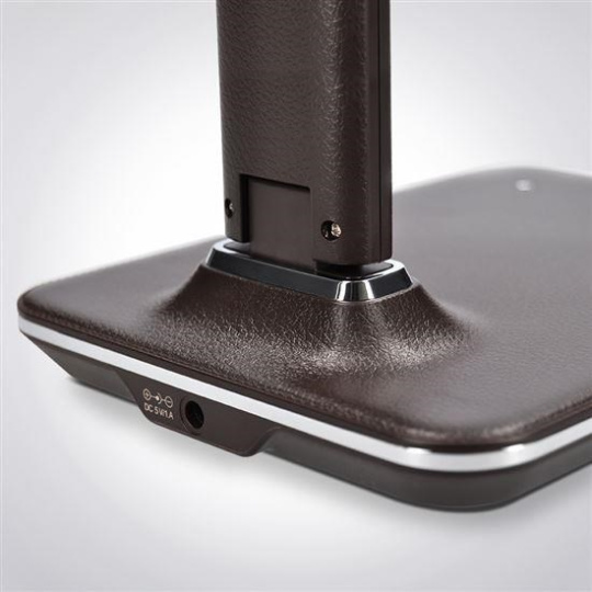 Solight LED stolní lampička s displayem, 9W, volba teploty světla, kůže, hnědá