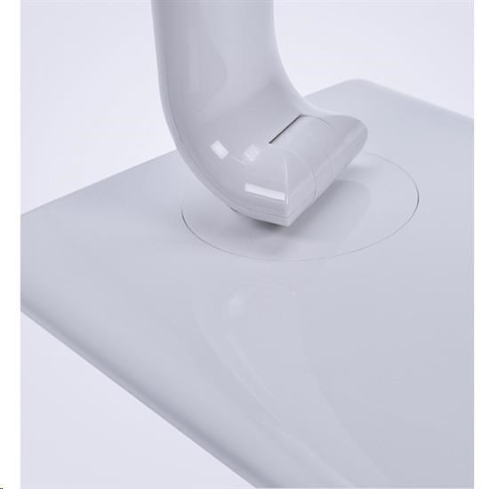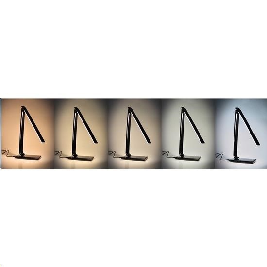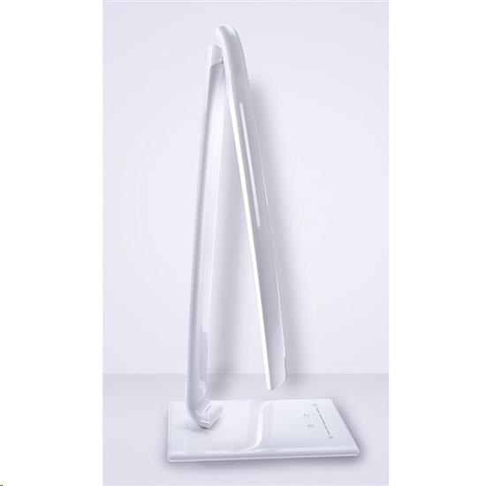 stolní lampička s LED světelným zdrojem možnost volby 5 barev světla – teplá, neutrální bílá, bílá a studená bílá (3000K-6000K) stmívatelná - plynulá regulace jasu dotykové spínání maximálně flexibilní - ohebné rameno, otočná základna a náklopná hlava příkon: max. 12W světelný tok: max. 700lm USB napájecí zdířka pro nabíjení telefonů (5V, 1000mA) USB kábel súčasťou protiskluzová základna s dotykovým vypínačem barva: bílý lesk napájení: AC 100-240V délka napájecího kabelu: 140cm rozměry: cca 420 x 360 x 125mm energetická třída: A+ LED zdroj nelze měnit materiál: ABS.
