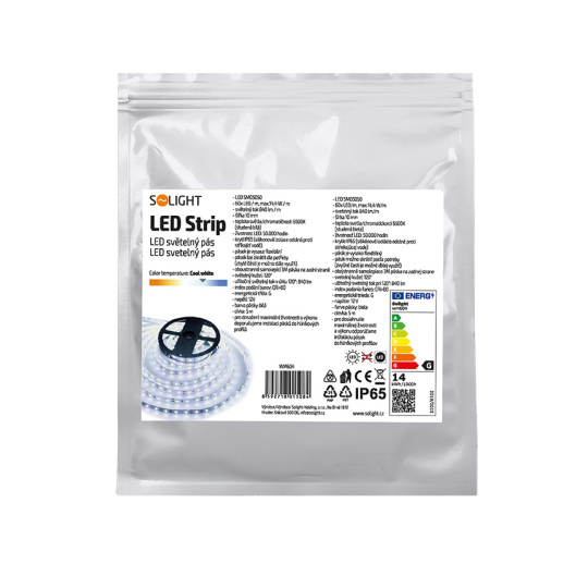 Solight LED světelný pás, 5m, SMD5050 60LED/m, 14,4W/m, IP65, studená bílá