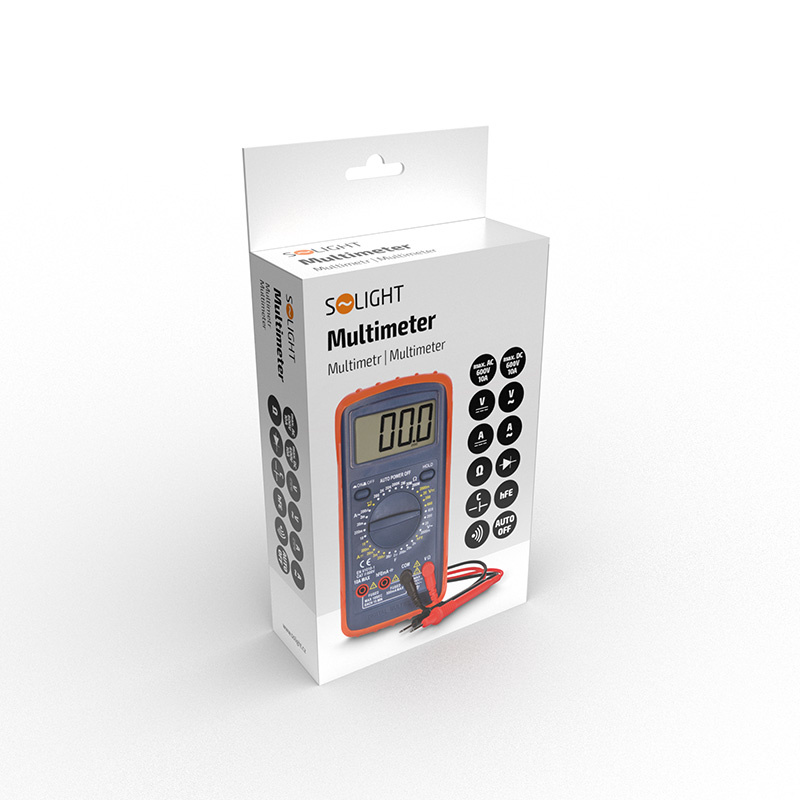 Solight multimetr, max. AC 600V/10A, max. DC 600V/10A, test diody, bzučák, hFE, kapacita, odpor