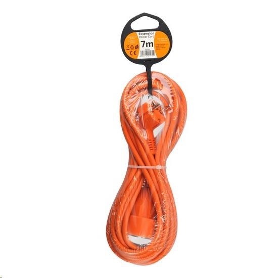 Oranžový prodlužovací kabel s délkou 7 metrů a jednou zásuvkou je ideální k prodloužení elektrické energie na zahradě nebo v dílně. Díky třem vodičům včetně uzemnění je vhodný pro připojení jakýchkoli zařízení s třípólovou uzemněnou i dvoupólovou neuzemněnou vidlicí přívodní šňůry. Barevné odlišení od okolního prostředí zvyšuje bezpečnost při práci.