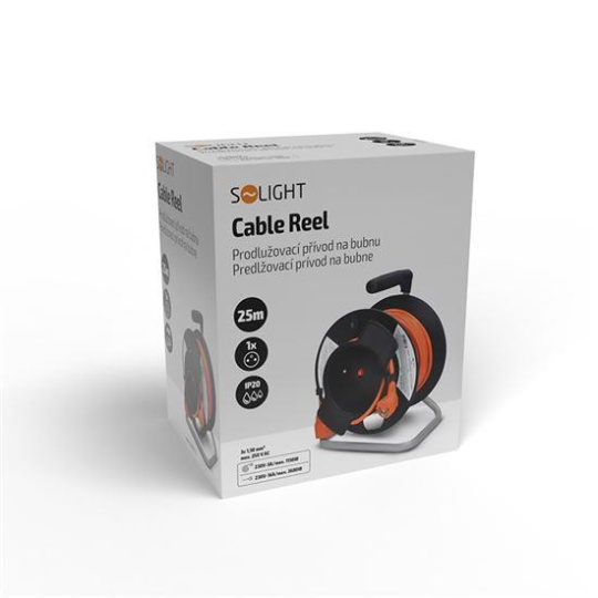 Solight prodlužovací přívod na bubnu, 1 zásuvka, 25m, oranžový kabel, 3x 1,5mm2