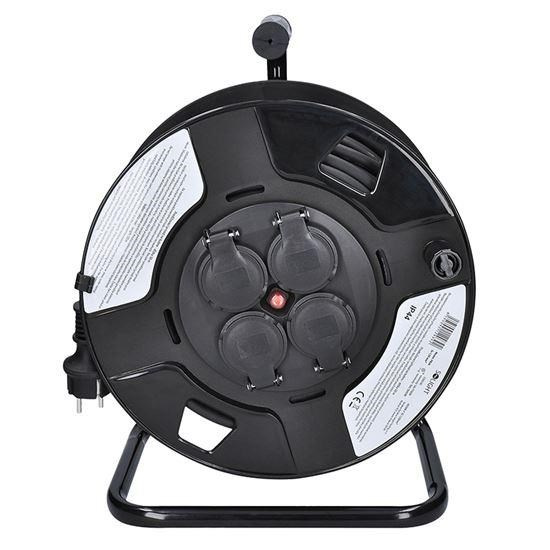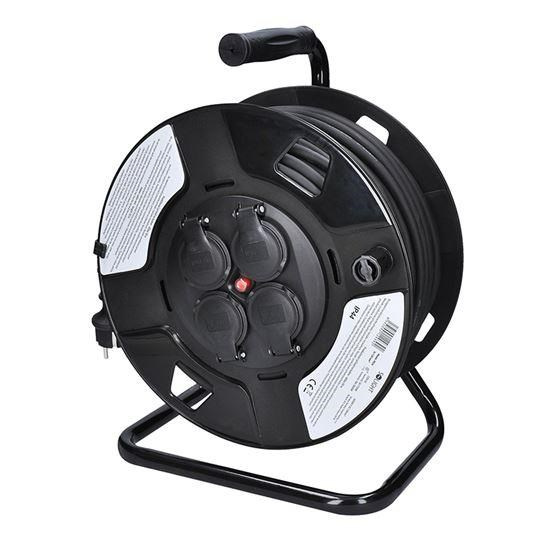 Prodlužovací kabel na navíjecím bubnu s délkou 50 metrů a čtyřmi zásuvkami je ideální pro použití venku, na stavbách nebo v dílnách. Gumový kabel zajišťuje odolnost proti povětrnostním podmínkám a mechanickému namáhání. Produkt je navržen pro bezpečné a spolehlivé připojení stavebních, zahradních i méně náročných průmyslových zařízení..... více