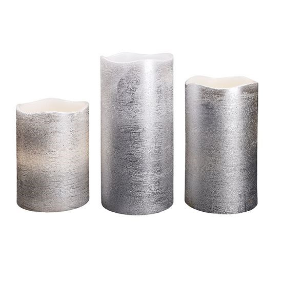 Solight sada LED svíček, 3x svíčka, 10/13/16cm, stříbrná barva, 3x AAA