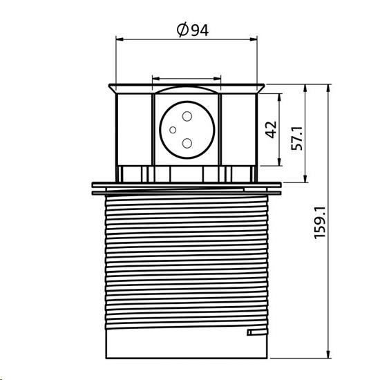 výška výsuvné části nad stolem: 58mm; výška části pod stolem: 100mm