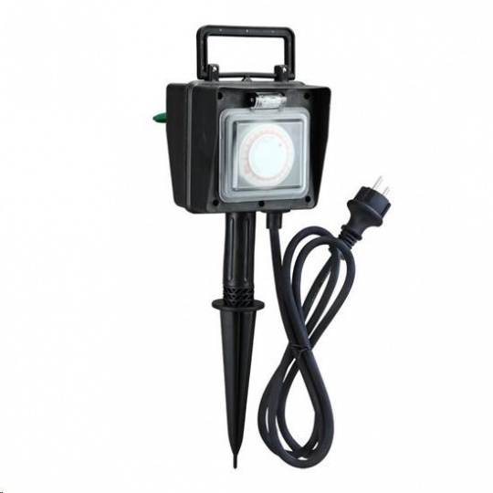 plastový sloupek s elektrickými zásuvkami a časovým spínačem, přenosný přívod elektrické energie do zahrad a sadů, 2 zásuvky s krytkami proti vlhkosti a prachu, časový spínač mechanický 24h, min. časový úsek 15min, hrot k zapíchnutí do země.... více