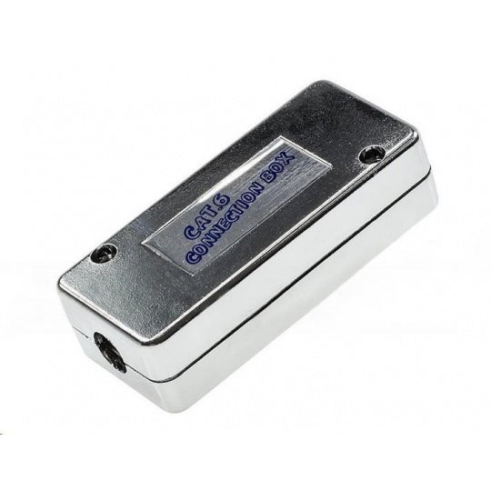Propojovací box CAT6, stíněný pokovením. Umožňuje propojit kabelové segmenty beze ztráty kvality vedení. Narážecí kontakty.