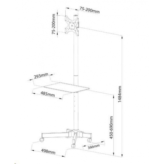 Stojan ErgoSolid Falco 40 Výškově nastavitelný, sklopný, na Tv 30-65", polička, pojezd s aretací, nosnost 60kg Výborný, cenově dostupný stojan pro zavěšení televizorů s úhlopříčkou 30" až 65"- Stojan je výškově nastavitelný v rozmezí 100cm až 148cm, sklopný +/- 15° a v balení naleznete i poličku na příslušenství o rozměrech 485mm x 293mm a nosností 4kg. Kabeláž je možné vést skrytě tělem stojanu. Stabilní podstava o rozměreh 837mm x 634mm je osazena pojezdovými kolečky s aretací. Stojan je vhodný díky pěknému designu, spolehlivosti a nízké ceně do obchodů, showroomů, prodejen, hotelů, na veletrhy, konference, ale i do domácností. Stojan ErgoSolid Falco 40 Ergosoild Falco 40: stojan na Tv 30-65 palců, nosnost 60kg, polička, nastavení výšky, vedení kabeláže, pojezd s aretací Technické údaje: nosnost 60kg podpora VESA standardů 100x100 až 600x400 možnost zavěšení Tv s úhlopříčkou 30" až 65" výškové nastavení Tv v rozmezí 100cm až 148cm možnost náklonu +/- 15° polička na příslušenství, rozměry 485mm x 293mm. nosnost 4kg systém pro skryté vedení kabeláže tělem stojanu stabilní podstava s rozměry 837mm x 634mm pojezdová kolečka s aretací materiál ocel výborná kvalita a pěkný design barevné provedení černé záruka 3 roky.
