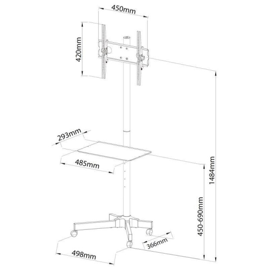 Stojan na Tv nebo monitory Ergosolid Falco 24 Stojan na televize i monitory 23-55", VESA 75x75 až 400x400, nastavení výšky Tv 1000-1480mm, náklonu Tv +15°/-15°, systém pro skryté vedení kabeláže, kolečka s aretací, polička na příslušenství 485x293mm, nosnost 25kg Ekonomický stojan Ergosolid Falco 24 je ideální pro zavěšení monitoru nebo televizoru s úhlopříčkou 23" až 55". Umožňuje regulaci výšky obrazovky 1000-1484mm, náklon +/- 15°, skryté vedení kabeláže, pojezd s aretací. Podpora VESA standardu 75x75 až 400x400mm. Nosnost 25kg. Součástí balení je polička na příslušenství 485x293mm. Barevné provedení černé. Záruka 3 roky. Stojan ErgoSolid Falco 24: kvalitní stojan na televizor 23-55 palců, nosnost 25kgStojan ErgoSolid Falco 24: pohled na zadní stranu stojanu na televizory s úhlopříčkou až 55 palců Technické údaje: nosnost 25kg podpora VESA standardu 75x75 až 400x400 na monitory a televizory s úhlopříčkou 23" až 55" nastavení výšky obrazovky max. 1480mm možnost náklonu obrazovky +15° až -15° kvalitní pojezdová kolečka s aretací polička na příslušenství s nosností 4kg rozměry poličky 485mm x 293mm systém vedení kabeláže snadná manipulace vynikající kvalita pěkný design barevné provedení černé záruka 3 roky Polička na příslušenství na stojanu ErgoSolid Falco 24: nosnost 4kg, výškové polohování, rozměry 485mm x 293mmDržák pro zavěšení televizorů na stojanu Ergosolid Falco 24, pohled ze zadní strany, šroub pro nastavení výšky obrazovky. Stojan Ergosolid Falco 24 podporuje VESA standardy: VESA 75x75 VESA 100x100 VESA 200x100 a 100x200 VESA 200x200 VESA 300x100 a 100x300 VESA 300x200 a 200x300 VESA 300x300 VESA 400x200 a 200x400 VESA 400x300 a 300x400 VESA 400x400.
