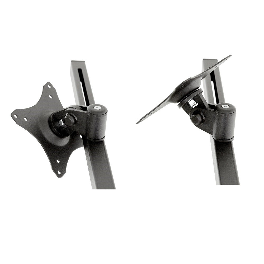 Stolní držák na 6 monitorů Edbak SV17 Stolní držák na 6 monitorů nebo televizorů s úhlopříčkou 17"-27", parabola, plně nastavitelné pozice monitorů, profesionální kvalita, VESA standardy 75x75 a 100x100, barva černá, nosnost 60kg Profesionální parabolický stolní držák na 6 monitorů 17-27". Nastavitelná poloha každého monitoru dle potřeby: otáčení do stran, naklápění, korekce roviny, pivot, posun do stran. Nastavení potřebné výšky vodorovných nosníků s monitory. V balení najdete 2 typy stolních úchytů: svěráky na uchycení na okraje stolů nebo šroubovici pro uchycení do průchodek. Systém vedení kabeláže. Nejvyšší kvalita, silnostěnný materiál. Podpora VESA standardů 75x75 a 100x100, barevné provedení černé, nosnost 60kg. Záruka 10 let. Profesionální stolní držák na 6 monitorů v parabole Edbak SV17 Technické údaje: nosnost 60kg na monitory s úhlopříčkou 17" až 27" VESA standardy 75x75mm a 100x100mm polohování vzdálenosti monitorů mezi sebou 223mm nastavení sklonu +/- 50° otáčení monitoru do stran +/-45° funkce pivot uchycení na stolové desky o síle 10-55mm (průchodka) nebo 10-80mm na okraj stolu nejvyšší kvalita, silnostěnný materiál, profesionální výrobek velmi snadná a rychlá montáž barva černá záruka 10 let Držák na 6 monitorů displejů Edbak SV17 Stojan na 6 monitorů Edbak SV17 podporuje VESA standardy: VESA 75x75 VESA 100x100 možnost zakoupení rozšíření na VESA 200x100 a 100x200 možnost zakoupení rozšíření na VESA 200x200.