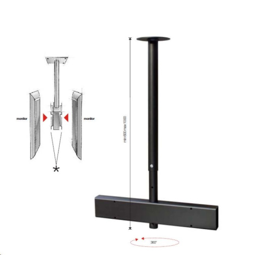 Stropní závěs - držák na Tv OMB LIFT NEW 600 FIX Výborný bezpečný stropní držák pro zavěšení Tv 37-55", výškově stavitelný Pokud hledáte spolehlivé stropní zavěšení televizoru s možností levného rozšíření na 2 televizory, je držák OMB LIFT NEW 600 FiX pro Vás tím správným řešením. Držák je výškově nastavitelný, otočný do stran. Celkové možné zatížení až 75kg. Výborná spolehlivá a pevná konstrukce. Barva černá. Technické údaje: doporučená velikost obrazovky 37" - 55" podporuje VESA standardy 100x100 až 600x400 dodání včetně 1ks držáku na obrazovky možnost dokoupení 2 držáku - zavěšení 2 obrazovek zády k sobě nosnost 75kg délkové nastavení 640 - 1040mm otočný o 360° snadné nastavení materiál ocel barva černá záruka 5 let Stropní držák OMB Lift New 600 podporuje VESA standardy: VESA 100x100 VESA 200x100 a 100x200 VESA 200x200 VESA 300x200 a 200x300 VESA 300x300 VESA 400x200 a 200x400 VESA 400x300 a 300x400 VESA 400x400 VESA 600x400.