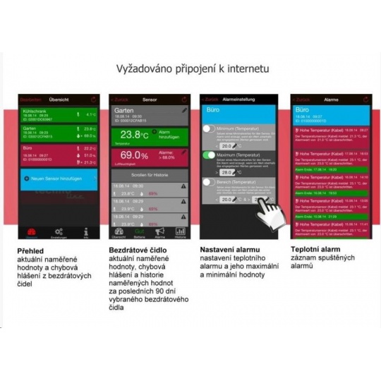 Kdekoliv na světě ja potom možné po připojení k Internetu na Vašem mobilním zařízení sledovat naměřená data.
