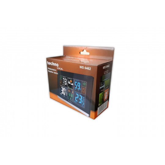 - barvy displeje: čas, datum zelená, barometrický tlak oranžová, vnitřní teplota a relativní vlhkost bílá, venkovní teplota a relativní vlhkost modrá