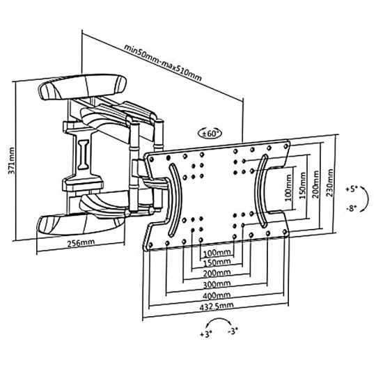Na televize 32-60", délkové nastavení 5-51cm, otočný +/-60° a sklopný +5°/-8°, systém vedení kabelů, vynikající konstrukce, VESA 100x100 až 400x200, nosnost 30kg.... více