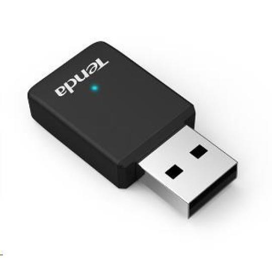 Bezdrátový Wi-Fi USB adaptér 802.11ac/a/b/g/n s MU-MIMO technologií, rychlost 633 Mb/s (5GHz 433 Mb/s + 2,4GHz 200 Mb/s). Zabezpečení 64/128-bit WEP, WPA-PSK/WPA2-PSK, WPA/WPA2. Pásmo 2,4 a 5 GHz. Interní anténa PIFA. Windows XP/7/8/8.1/10. Auto-Instalace. Technické parametry Wi-Fi standardy: 802.11ac/a/b/g/n a MU-MIMO technologie Frekvence: 2,4 a 5 GHz Přenosová rychlost: 5GHz 433 Mb/s, 2,4GHz 200 Mb/s Výstupní výkon: < 20 dBm (EIRP) Zabezpečení: 64/128-bit WEP, WPA-PSK/WPA2-PSK, WPA/WPA2 Způsob ovládání: PC, Auto-Instalace Podporované OS: Windows XP/7/8/8.1/10 Rozhraní: USB2.0 Anténa: 1x PIFA dBi, interní Provozní teplota: 0° až 40 °C Rozměry (v x š x h): 36,8 x 18,5 x 7,6 mm Hmotnost: 9 g Popis produktu Bezdrátový Wi-Fi USB adaptér Tenda U9 od společnosti Tenda Technologies podporuje standardy 802.11ac/a/b/g/n v pásmech 2,4 a 5 GHz, který umožňuje komunikaci rychlostí až 633 Mb/s (5GHz 433 Mb/s, 2,4GHz 200 Mb/s). Díky vysoké přenosové rychlosti je vhodná na streamování HD a FullHD videí a přenos větších objemů dat. Tenda U9 je vhodná jak do menších firem, tak i domácností pro stolní počítače i notebooky. Tenda U9 je konfigurována jednoduše pomocí operačního systému. Samozřejmostí je podpora silných zabezpečení 64/128-bit WEP, WPA-PSK/WPA2-PSK, WPA/WPA2. Tenda U9 disponuje MU-MIMO technologií. MU-MIMO (Multiple User - Multiple Input Multiple Output) se vyznačuje zkrácením doby čekání klientského zařízení na signál a také doby na obdržení dat z WiFi routeru. Tenda U9 je vybavena interní speciální PIFA anténou..