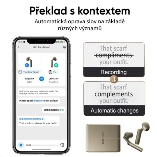 - Režim překladu ~ 10 hodin (při použití dobíjecího pouzdra)