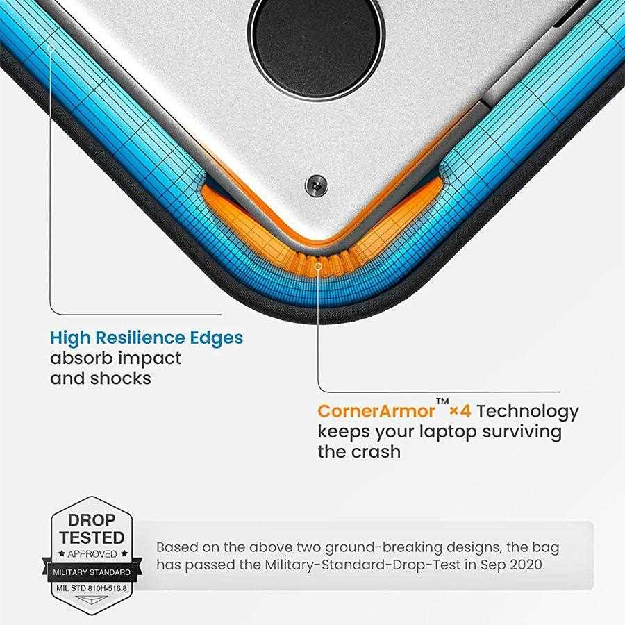 Jak co nejlépe ochránit svůj milovaný Mac proti poškrábání a poškození při pádech? Tento úkol s klidem svěřte novému pouzdru tomtoc. Jeho rohy a hrany jsou vyztuženy originální technologií CornerArmor. Ta splňuje vojenský standard pro pádové zkoušky. Nejde ale jen o ochranu nejzranitelnějších částí zařízení. Uvnitř pouzdra najdete velmi měkkou plyšovou podšívku a polstrování, se kterým bude notebook doslova jako v bavlnce. Poškrábání šasi zipem pak zabrání ochranný hřeben po celém jeho obvodu - jeden z mnoha malých detailů, které znamenají obrovský rozdíl.
