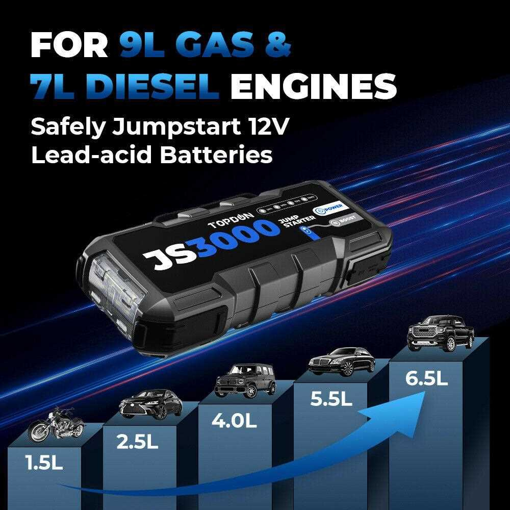 TOPDON Car Jump Starter JumpSurge 3000, 24000 mAh