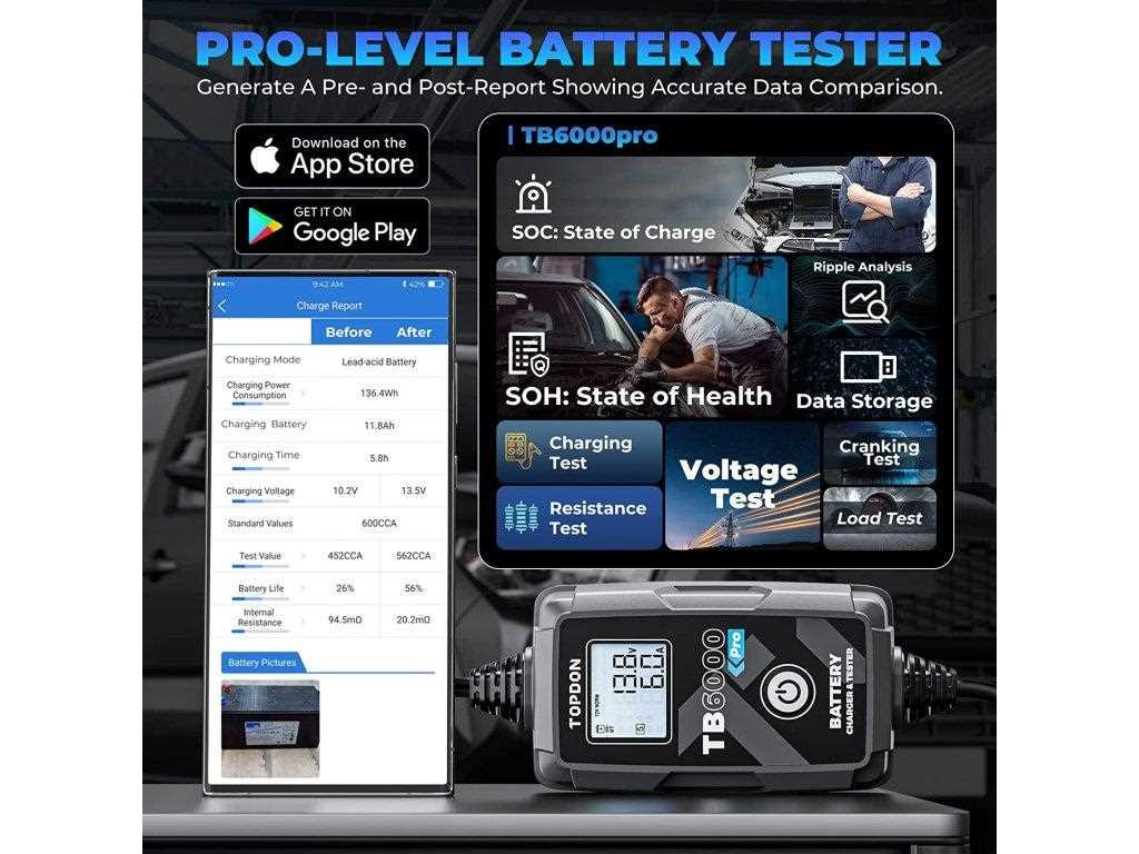 TOPDON TB6000Pro nabízí jako první v oboru inteligentní režim nabíjení, který dokáže zobrazit report před a po nabíjení, který ukazuje přesné srovnání dat.