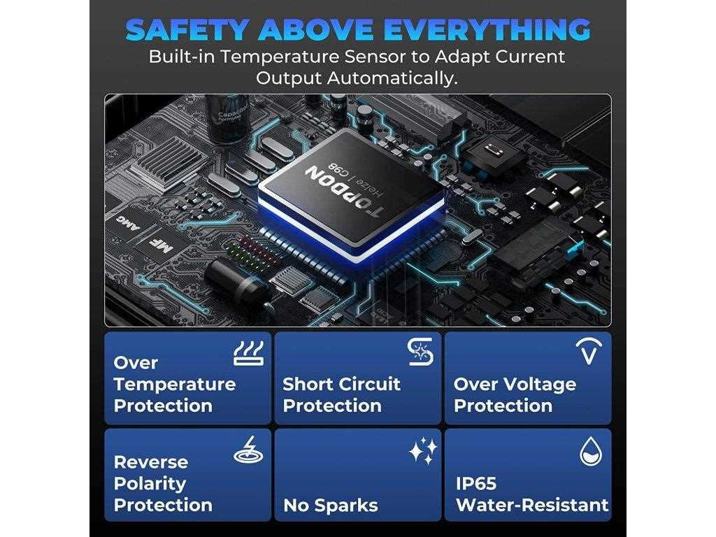 Díky inteligentním bezpečnostním funkcím TB6000Pro jsou uživatelé chráněni proti přepólování, jiskření, zkratu, přehřátí a přepětí.