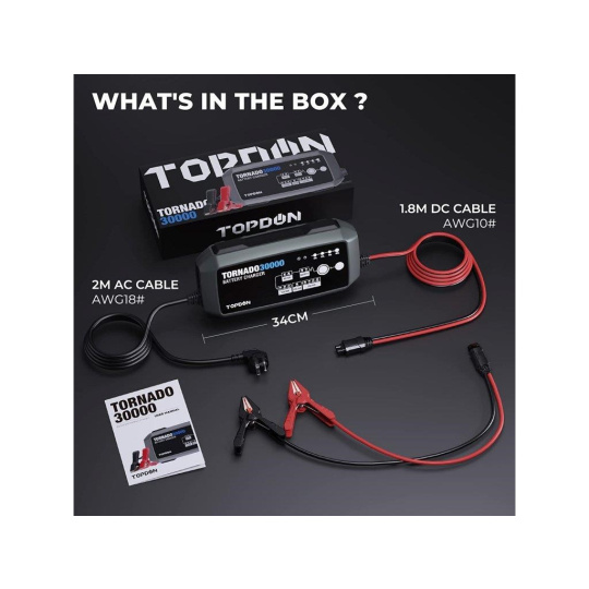 TORNADO30000 je vytvořena jak pro osobní, tak pro komerční užití. Dokáže oživit, opravit a dobít jak lithiové, tak lead-acid baterie. Také ale dokáže sloužit jako stabilní napájecí zdroj při opravách, testování nebo diagnostice automobilu bez nutnosti startování vozidla.