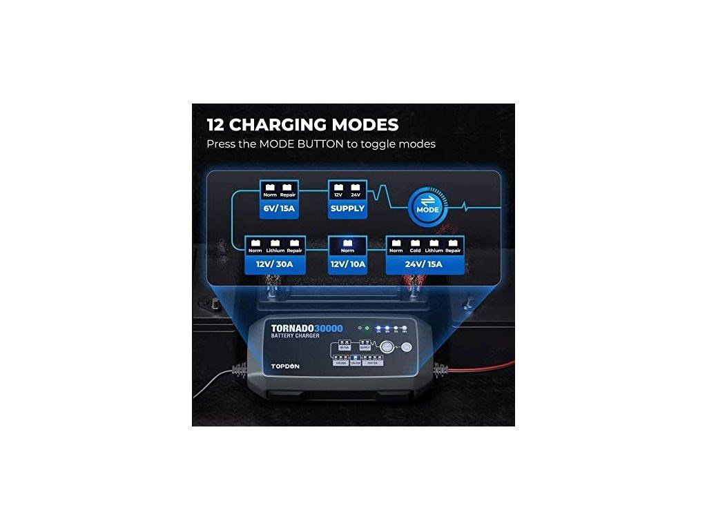 S jeho 9stupňovým, chytrým nabíjením a s jeho 12 nabíjecími módy, poskytuje TORNADO30000 bezkonkurenční možnost nabíjení a ochrany pro svého uživatele.