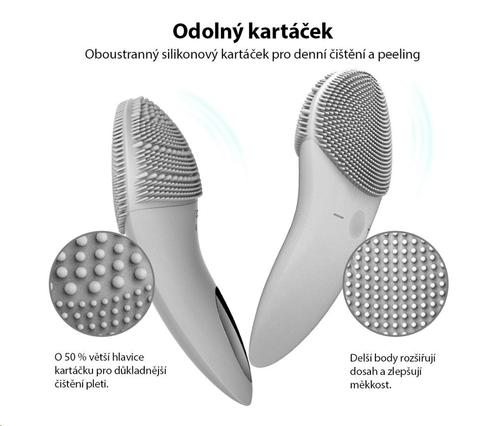 • Oboustrannou čisticí hlavu lze použít pro každodenní čištění a exfoliaci.