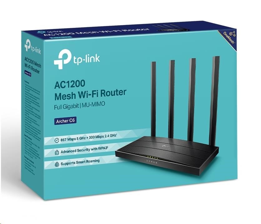 TP-Link Archer C6 v3.2 OneMesh/Aginet WiFi5 router (AC1200, 2,4GHz/5GHz, 4xGbELAN, 1xGbEWAN)