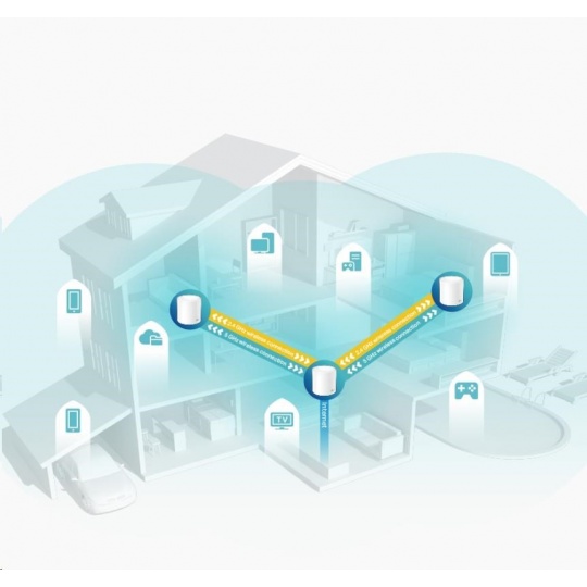- Jedna sjednocená síť - Více jednotek tvoří domácí síť, která automaticky vybere nejlepší spojení, když se pohybujete po domácnosti.