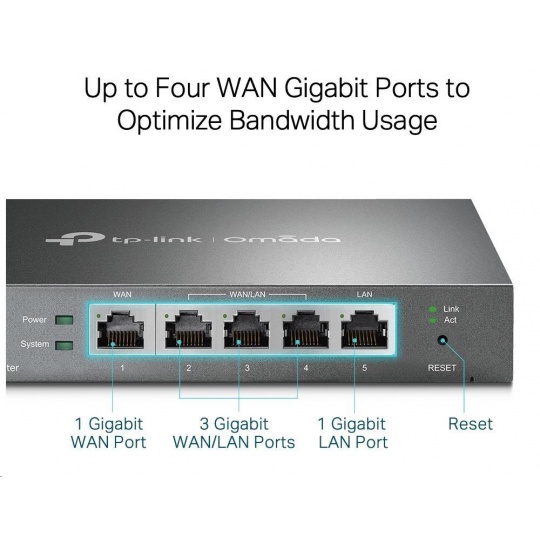 - Až 4 porty WAN: 1 gigabitový port WAN a 3 gigabitové porty WAN/LAN s funkcí vyrovnávání zatížení zvyšují míru využití vícelinkového širokopásmového připojení.