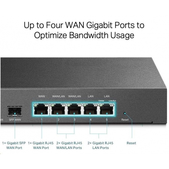- Až 5 portů WAN - 1 gigabitový SFP WAN port a až 4 gigabitové RJ45 WAN porty optimalizují využití šířky pásma.