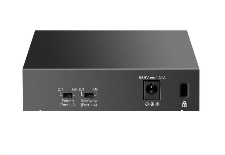 - Přenos PoE až na 250 m: Díky režimu Extend dosahuje přenosová vzdálenost PoE až 250 m, což je ideální pro nasazení kamerových systémů ve velkých oblastech.