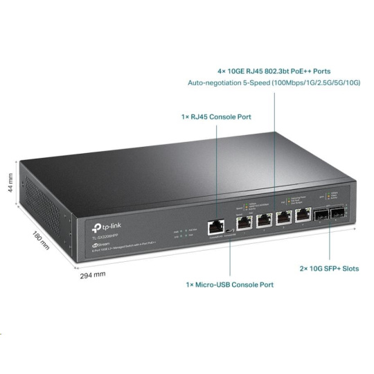TP-Link OMADA switch SX3206HPP (4x10GbE,2xSFP+,4xPoE++,200W,2xconsole)