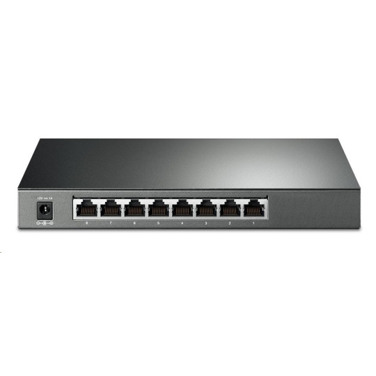 - Plně gigabitové porty: 8 gigabitových portů RJ45 poskytuje vysokorychlostní připojení. 8. port může přijímat napájení ze zdroje kompatibilního s PoE (Power Sourcing Equipment, PSE).