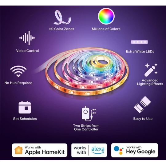 - Podpora Apple HomeKit – ovládejte světelný pásek pomocí Siri s funkcí Apple HomeKit.