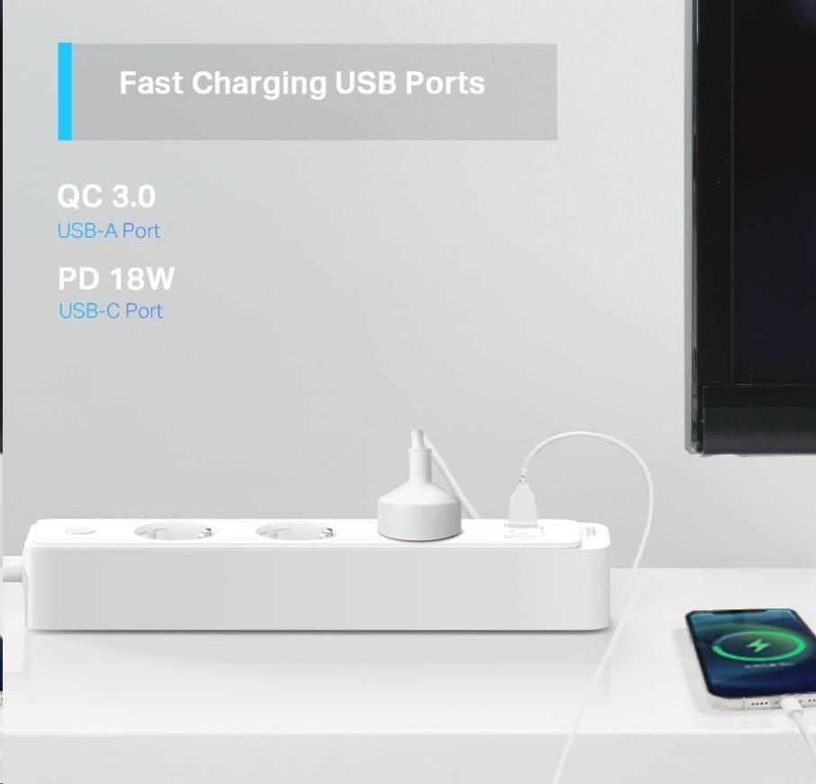 TP-Link Tapo P300(EU) chytrý WiFi prodlužovací kabel (3x230V,2xUSB-A,1xUSB-C,2300W,10A,2,4 GHz,BT)