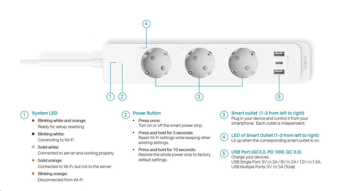 - Individuální kontrola – ovládejte samostatně 3 chytré zásuvky napájecí vícenásobné zásuvky prostřednictvím aplikace nebo hlasových příkazů.