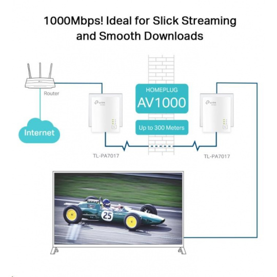 Využitím pokročilé technologie HomePlug AV2, TL-PA7017 KIT zajišťuje stabilní a vysokorychlostní kabelové připojení a poskytuje datové přenosy až 1 000 Mbps po elektrické síti s dosahem až 300 metrů. Streamujte v HD, hrajte online a stahujte velké soubory bez přerušení díky spolehlivé powerline technologii.