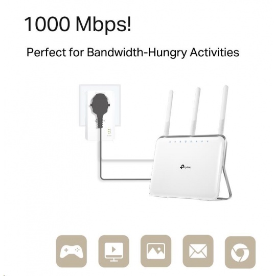 - Kompatibilní se zásuvkami standardu HomePlug AV2 – vysoká rychlost přenosu dat dosahující 1 000 Mbit/s uspokojí veškeré nároky vašich online aktivit.