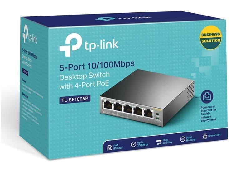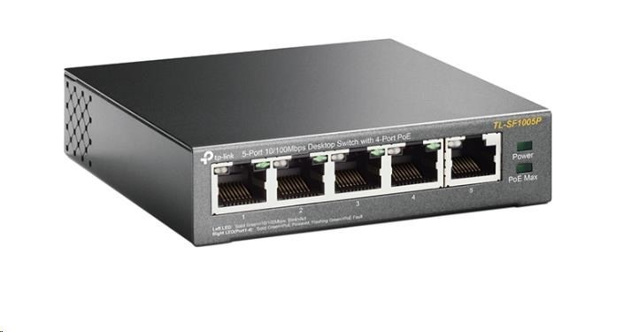 TP-Link switch TL-SF1005P (5x100Mb/s, 4xPoE+, 67W, fanless)