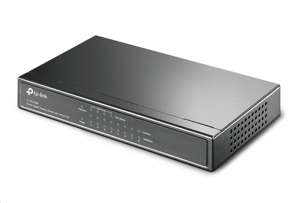 TP-Link switch TL-SG1008P (8xGbE, 4xPoE+, 64W, fanless)