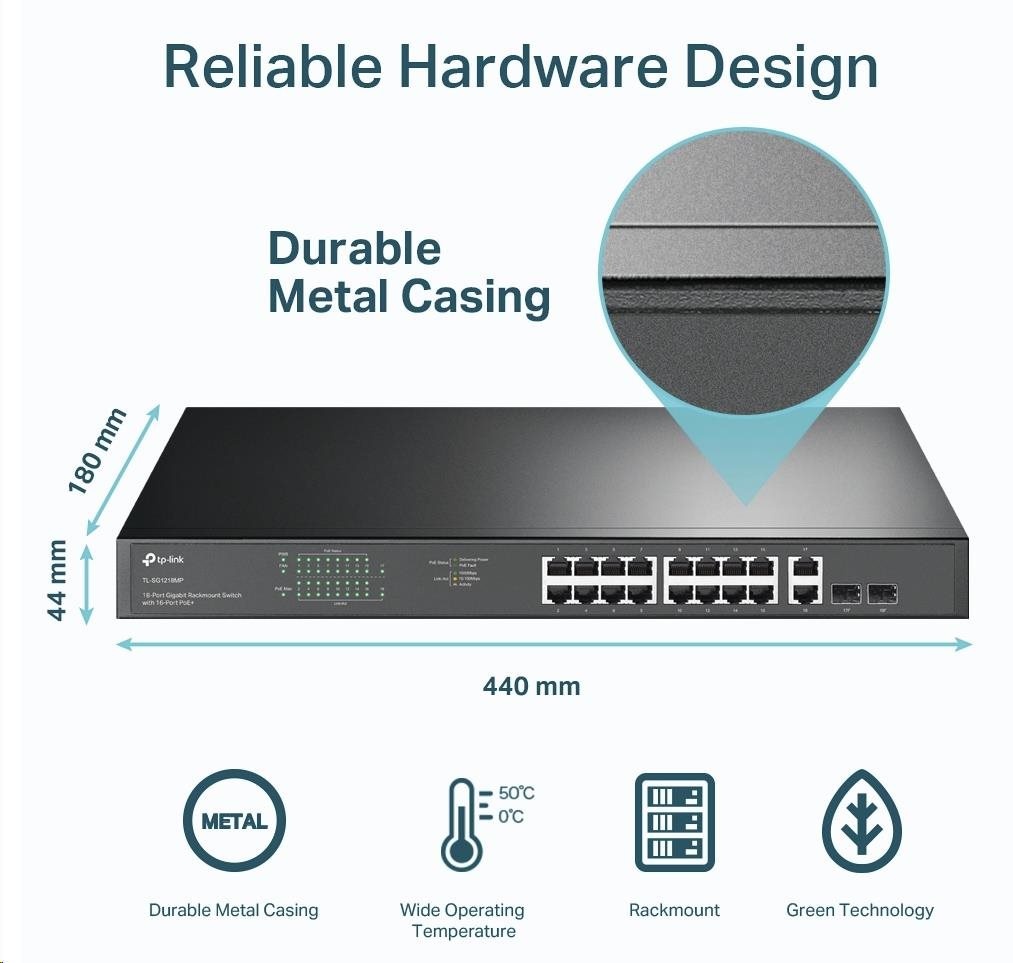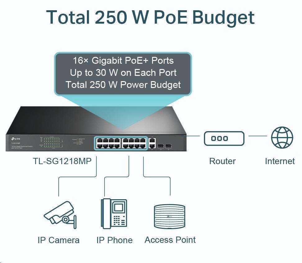 TP-Link CCTV switch TL-SG1218MP (16xGbE, 2xGbE/2xSFP combo, 16xPoE+, 250W)